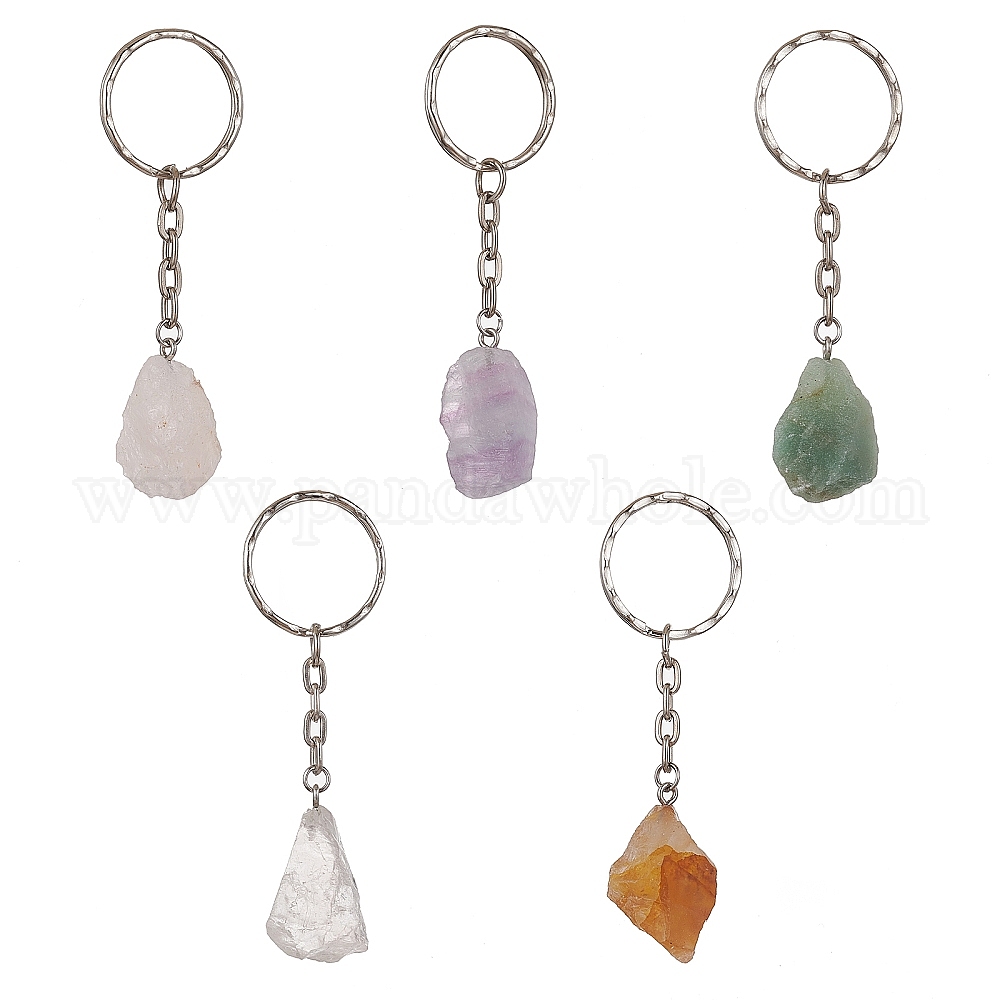 Брелки с подвесками «Наггетс» из натуральных драгоценных камней, с железными разрезными брелоками