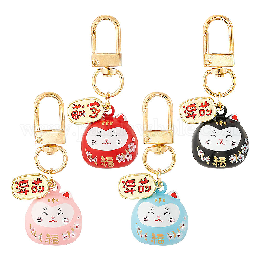 4 шт 4 цвета счастливая кошка формы латунный колокольчик брелок подвеска, подвеска для украшения автомобиля и сумки