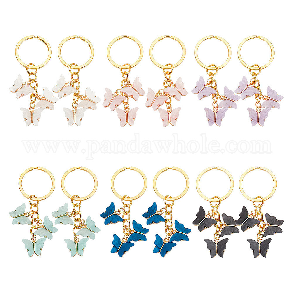 12 шт. 6 цвета, акриловые подвески из сплава, украшения, с железными разрезными брелоками, бабочка