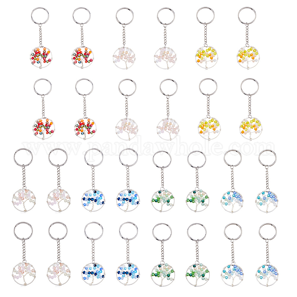 28шт 7 цвета брелки из сплава стекла, с 304 кольцами для ключей из нержавеющей стали, Кольцо с деревом жизни (02R36P)