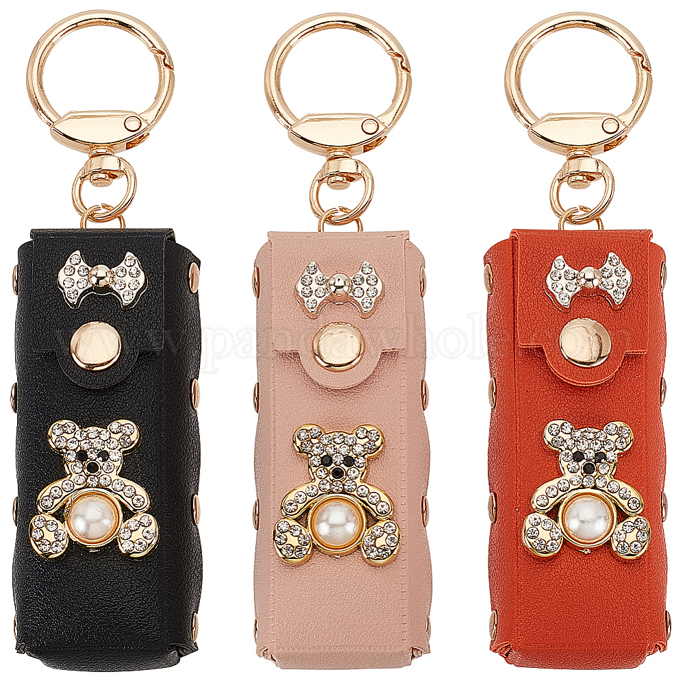 3 шт 3 цвета искусственная кожа и пластик жемчуг и стразы держатель для помады брелки, портативная сумка-держатель для бальзама для губ для женщин, С результатами сплава и железа, золотые