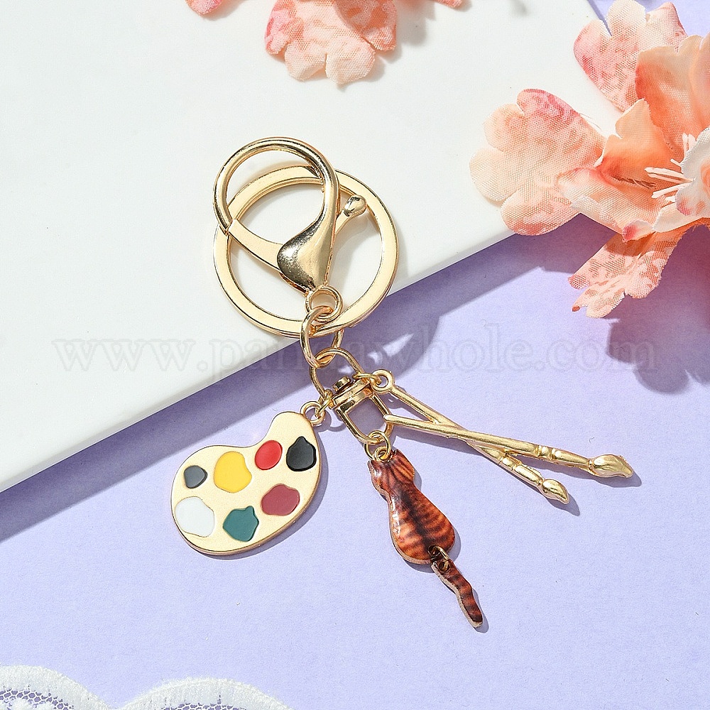 Брелок из эмалевого сплава, с железной фурнитурой, кот и палитра