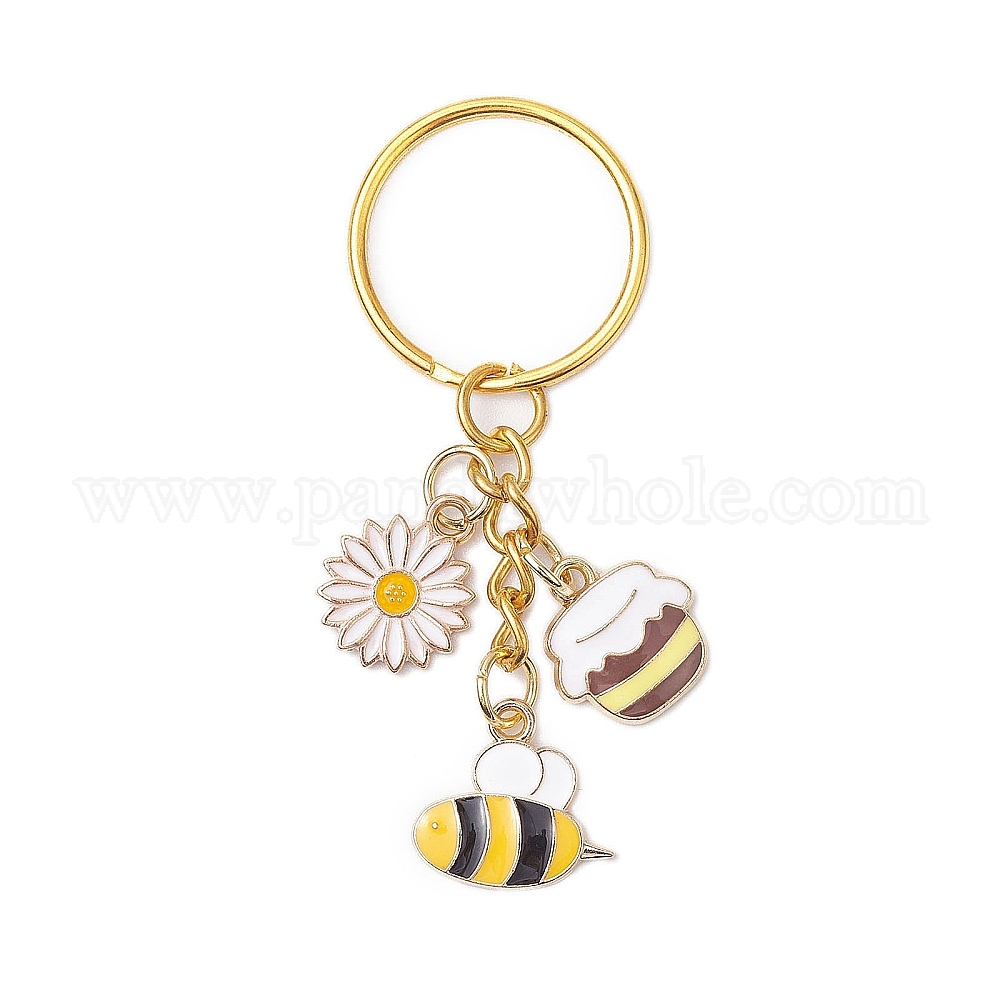 • Золотой Брелок из эмалевого сплава, с железными разрезными брелоками, ромашка и пчела, золотые, 6.8 см