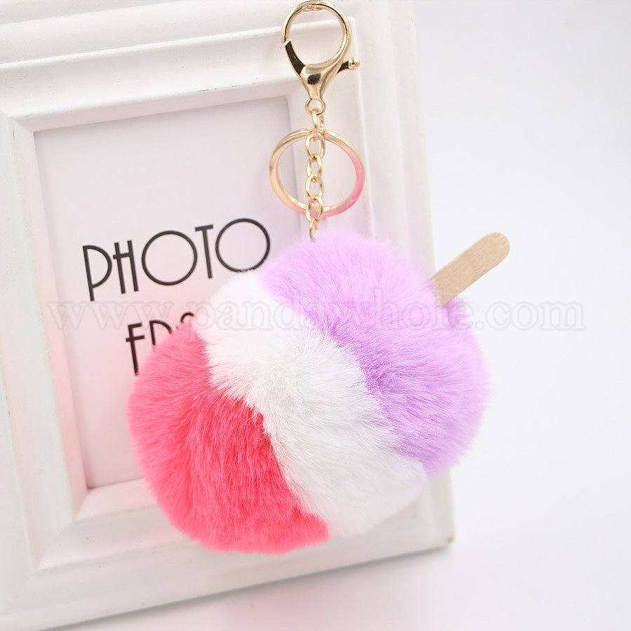 Брелок для ключей с помпоном для мороженого для женщин, Подвеска-подвеска в виде автомобиля из искусственного меха кролика