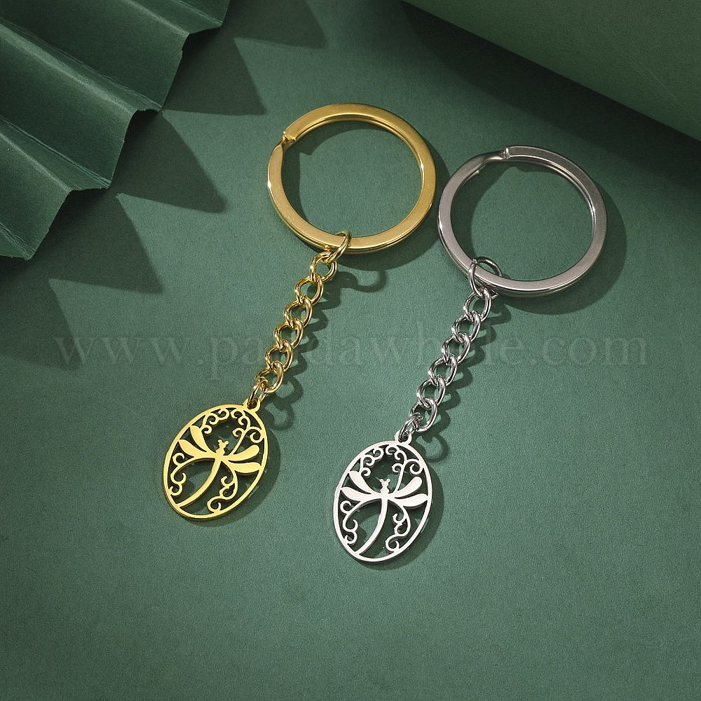 • Нержавеющая Сталь Цвет Не тускнеет 304 брелок из нержавеющей стали, стрекоза овальной формы, цвет нержавеющей стали, 2.5x1.6 см