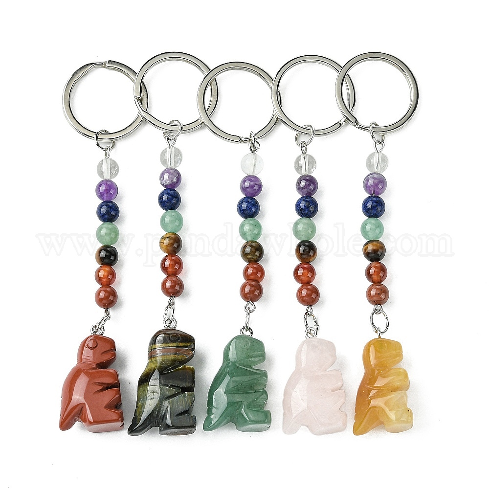 Брелок динозавра из натурального драгоценного камня, с 7 бусинами из чакры и железными брелоками, подвеска для автомобильной сумки для женщин и мужчин