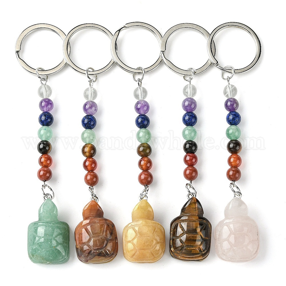 Брелок из натурального драгоценного камня черепахи, с 7 бусинами из чакры и железными брелоками, подвеска для автомобильной сумки для женщин и мужчин