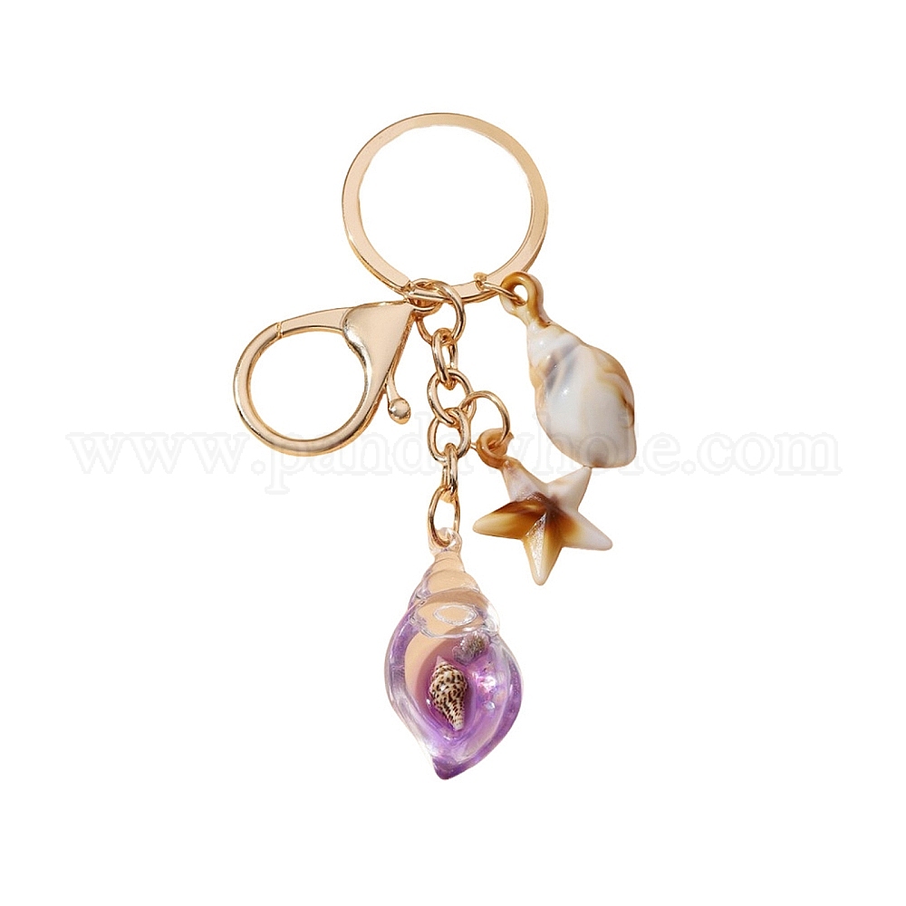• Фиолетовый Светящийся акриловый брелок с подвесками в виде морской звезды и раковины, с металлом, фиолетовые, 10.5x3 см