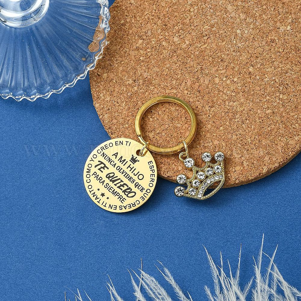 201 Брелок для ключей из нержавеющей стали и сплава со стразами, с медными кольцами, плоско-круглые