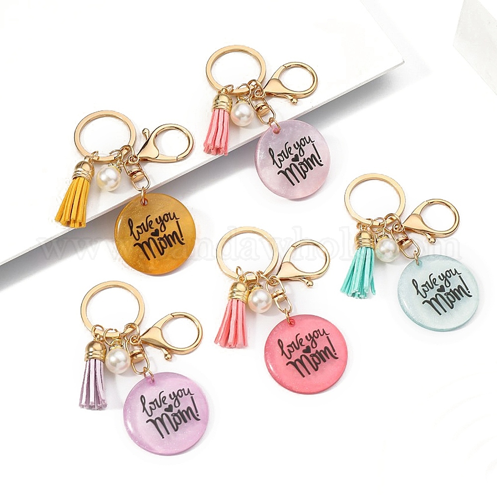 Брелки из смолы, украшения для сумок и кошельков, плоский круглый со словом люблю тебя, мама