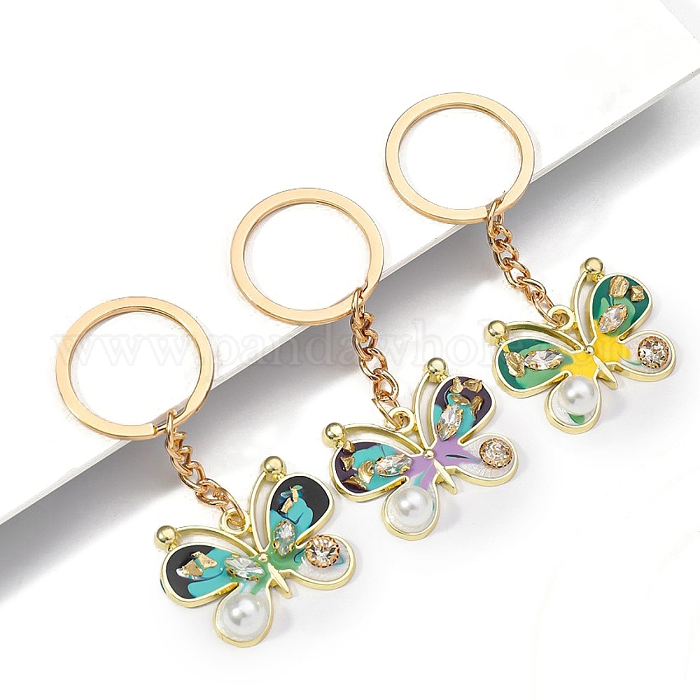 Брелки со стразами из сплава, украшения для сумок и кошельков, Эмаль стиле, с имитацией жемчужина бисера, бабочка
