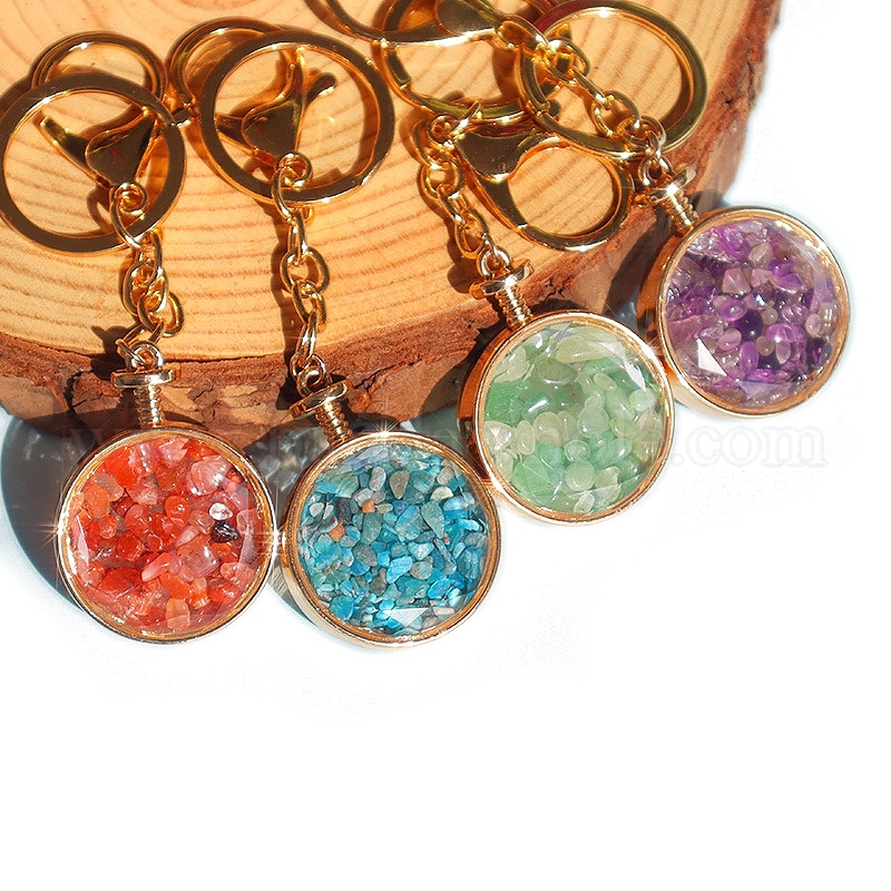 Брелки с драгоценными камнями, плоско-круглые, золотой свет