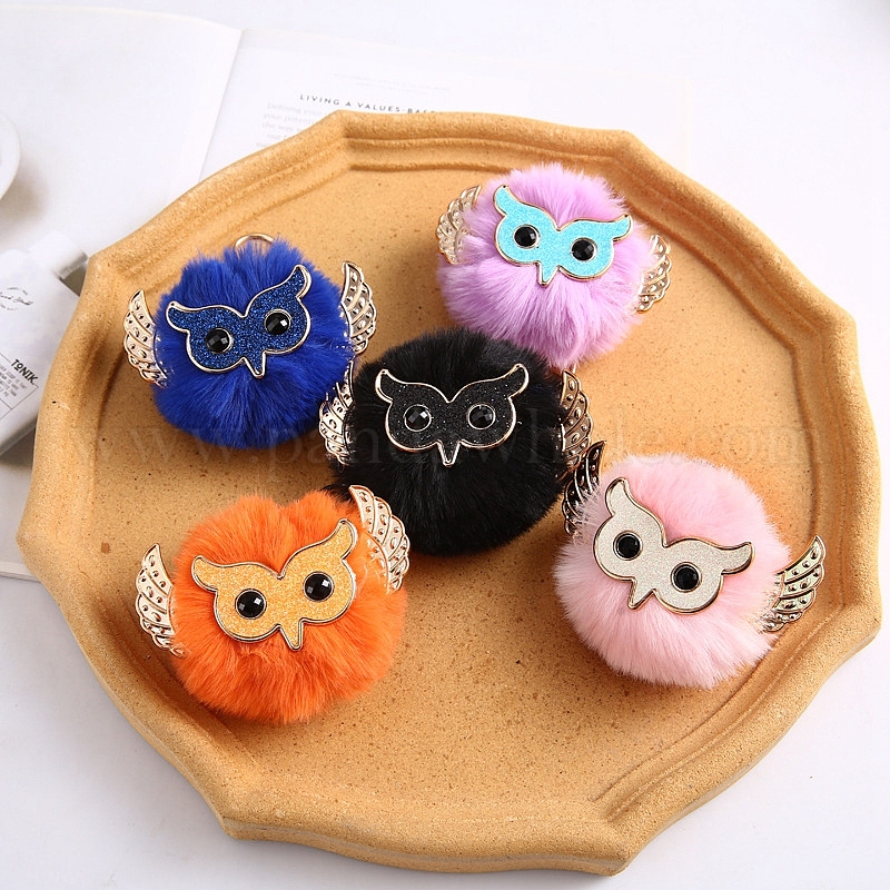 Брелок из шерсти, со сплавочной фурнитурой, помпоновый шар с совой