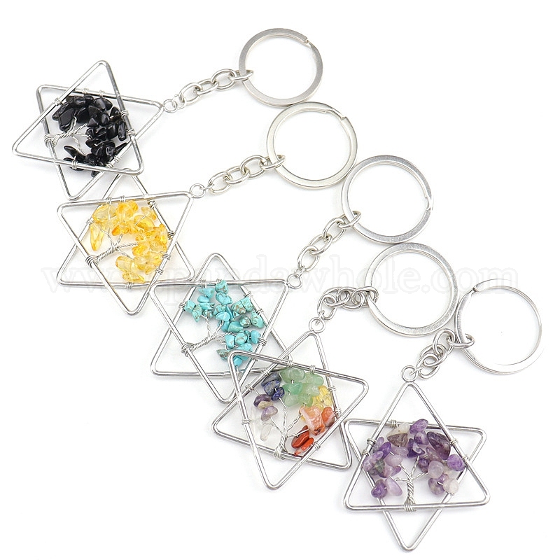 • Смешанные камни Брелки с драгоценными камнями, с металлическими разъемными кольцами, звезда, 10x5 см
