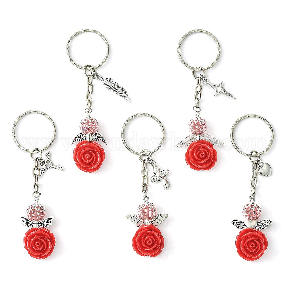 • Key Брелок из смолы, сплавов и стекла, с железной фурнитурой, Цветочный ангел, ключ, 8.5 см, Ключ: 14x15x2.5 мм