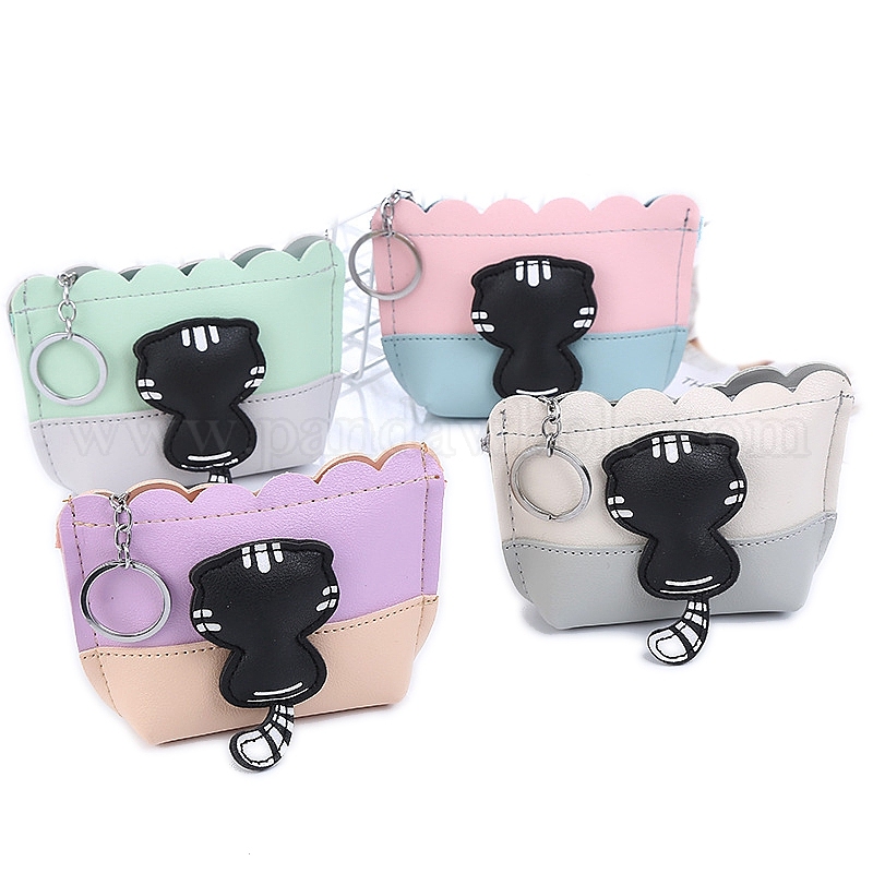 • Бежевый Брелок из искусственной кожи, для женского клатча-кошелька для монет, с кольцом ключевой железа, кошка, бежевые, кошелек: 9x13.5см