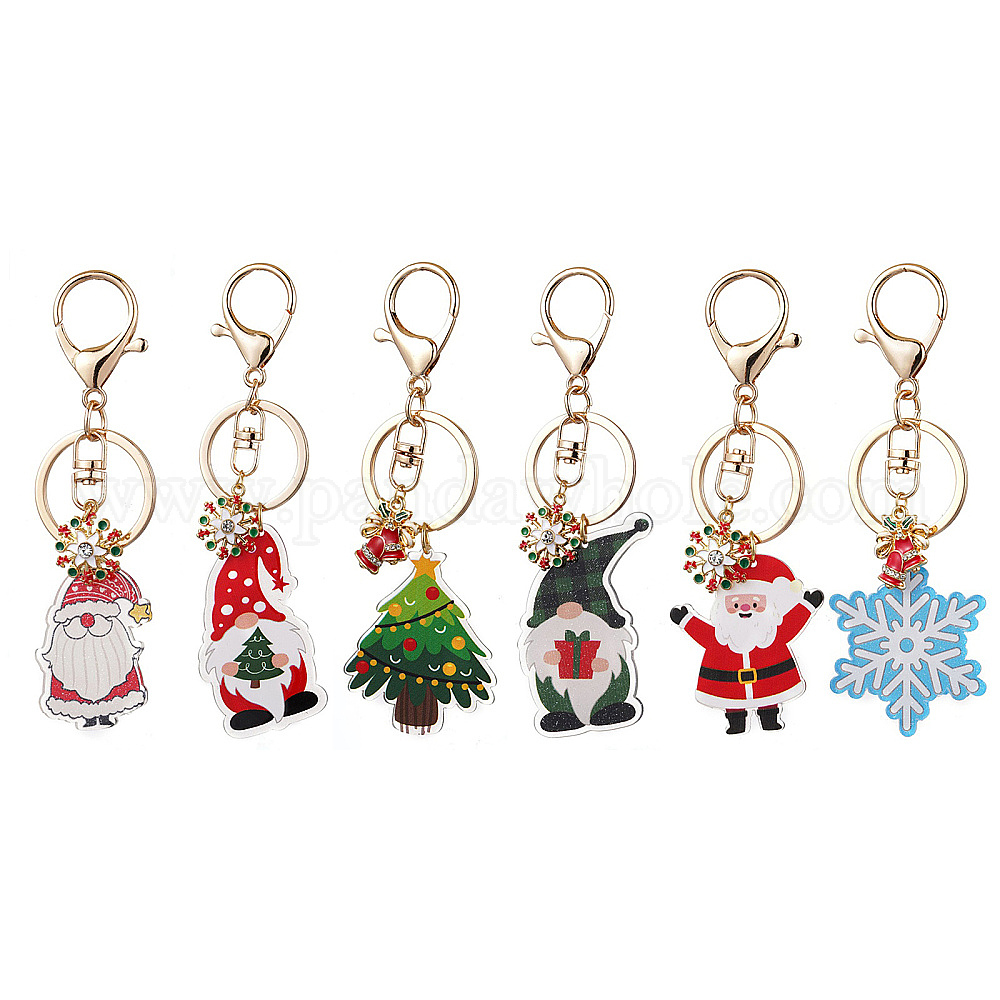 Брелок с акриловыми подвесками на рождественскую тематику, с подвесками из эмали и брелоком из железного сплава с застежкой-клешней в виде лобстера