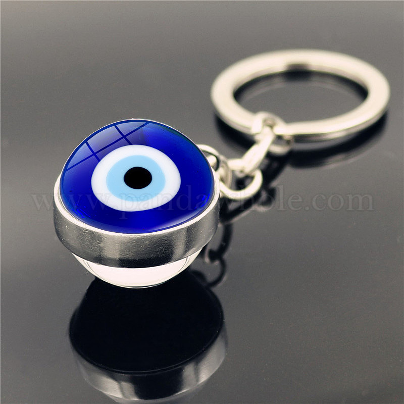 Брелок для ключей из сплава и стеклянного шара для женщин, подвесные украшения для дома, круглые с сглаза (02WZK7)