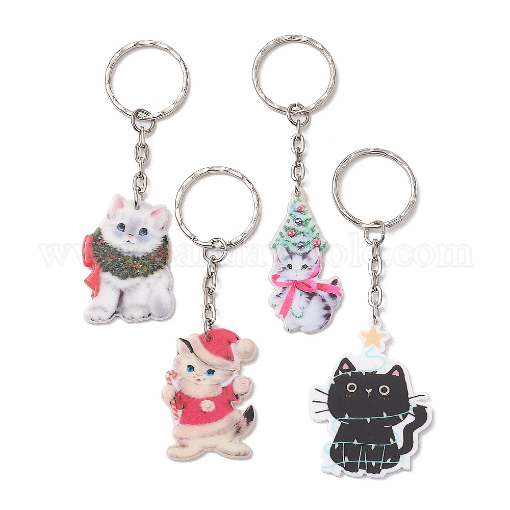Акриловый брелок, с железными разрезными брелоками, форма кошки