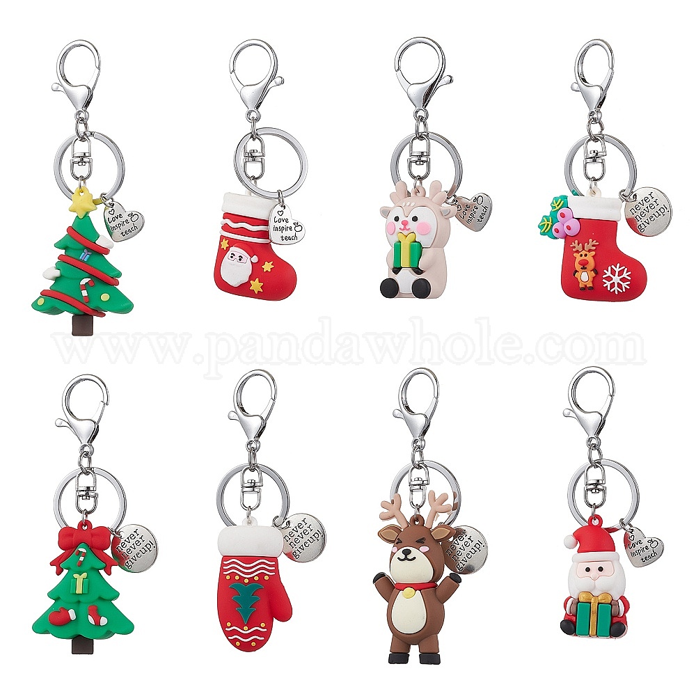 Рождественские пластиковые подвески из ПВХ брелок, брелок с застежкой из железного сплава