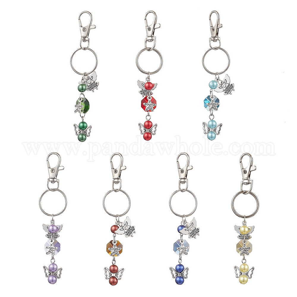 7 шт. акриловые со стеклянными брелоками, с подвесками из сплава и поворотной застежкой, ангел