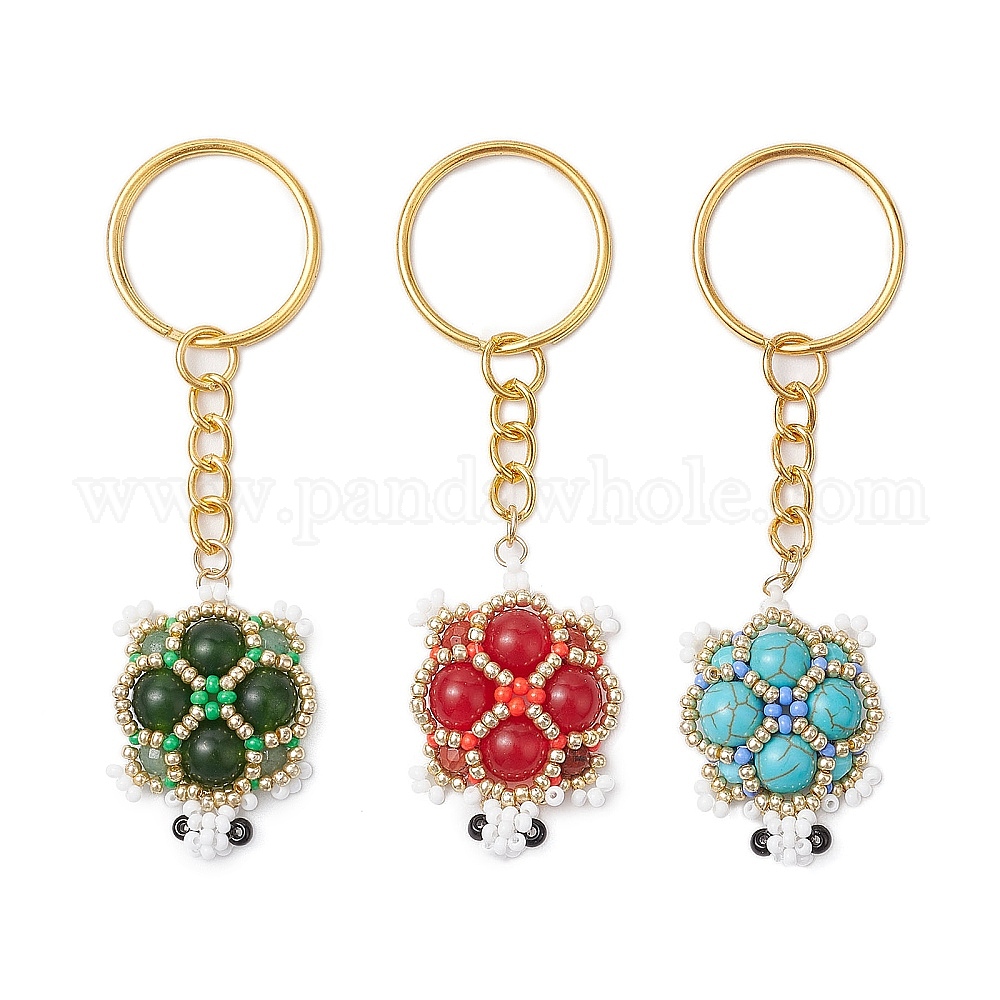 Стеклянные бусины ручной работы и малайзийский нефрит, красная яшма, синтетическая бирюза, зеленый авантюрин, брелок в виде черепахи