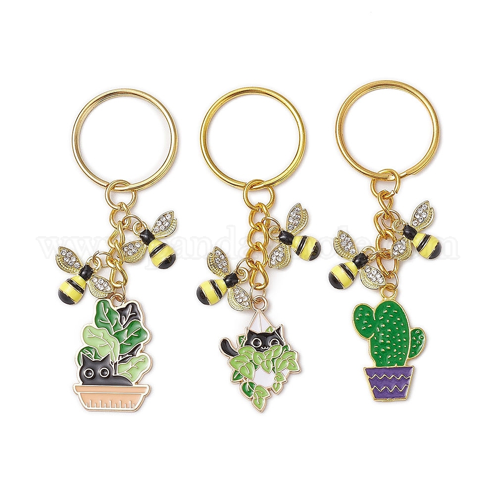 3шт 3 стили сплав эмаль подвеска брелок, с брелоки железа, растения и пчелы