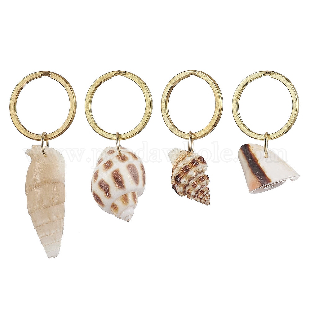 Брелок-подвеска из натуральной ракушки, с застежками для ключей из золотистой латуни (02Y7C7)