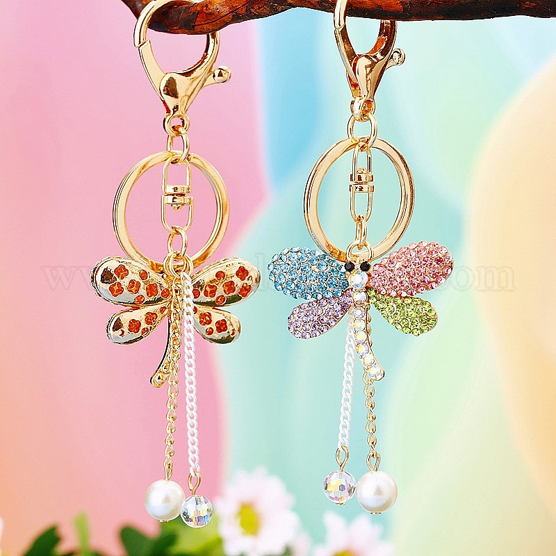 Брелок со стразами из цинкового сплава, стрекоза
