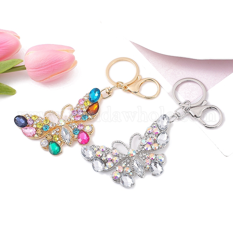 Сплав цинка брелок, со стразами, бабочка (02Y7G4)
