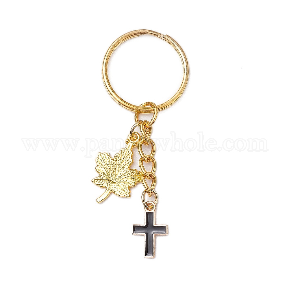 Эмалевые брелки с подвесками в виде кленового листа и креста, с золотистыми железными кольцами