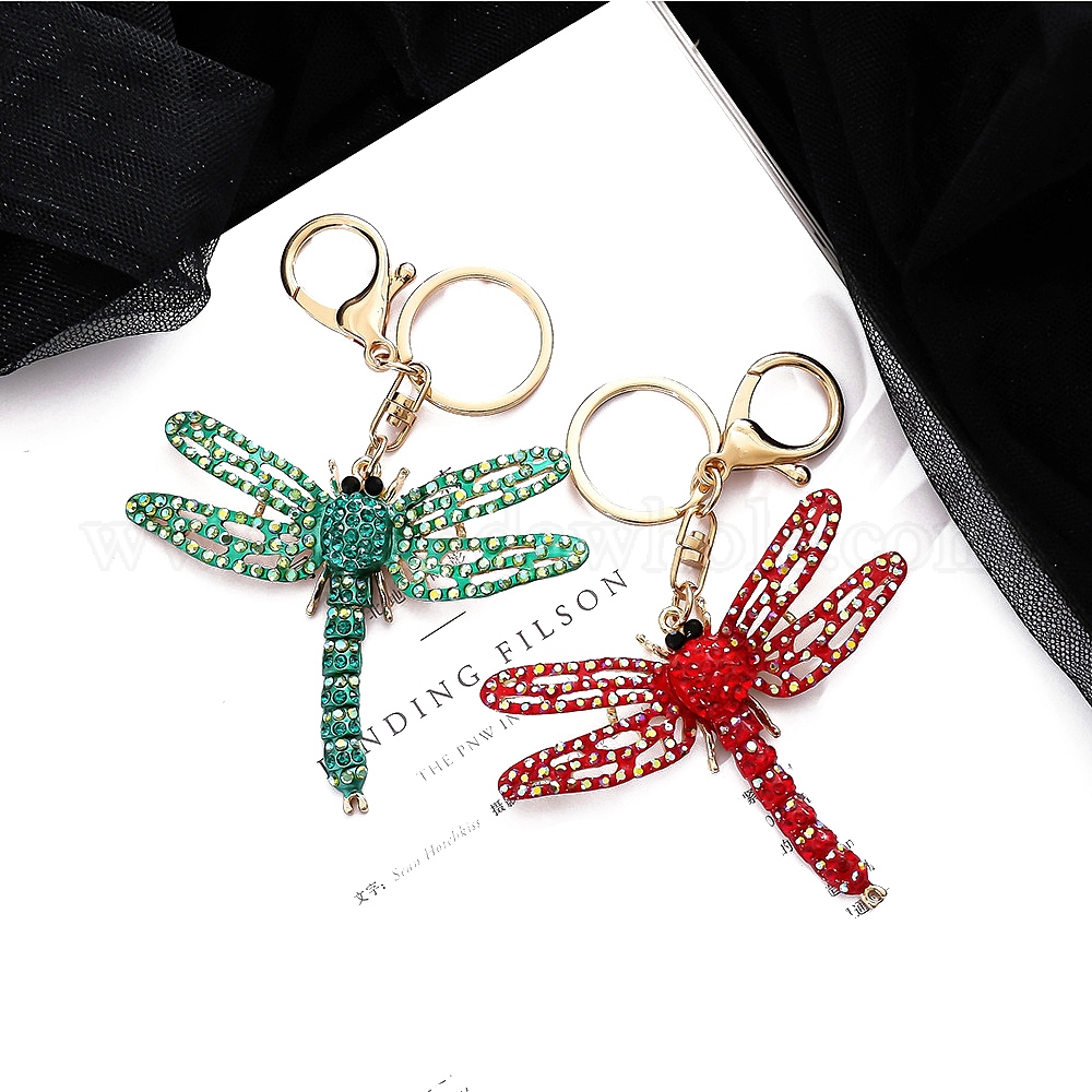 • Изумруд Сплав горный хрусталь брелок, стрекоза, изумруд, Кулон : 75x90 мм