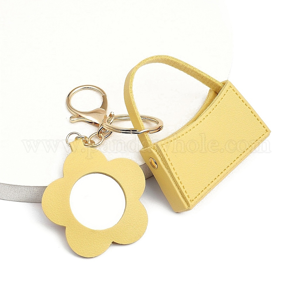 • Светло-желтый Портативная сумка-брелок из искусственной кожи, с цветочным зеркалом, светло-желтый, 70x65 мм