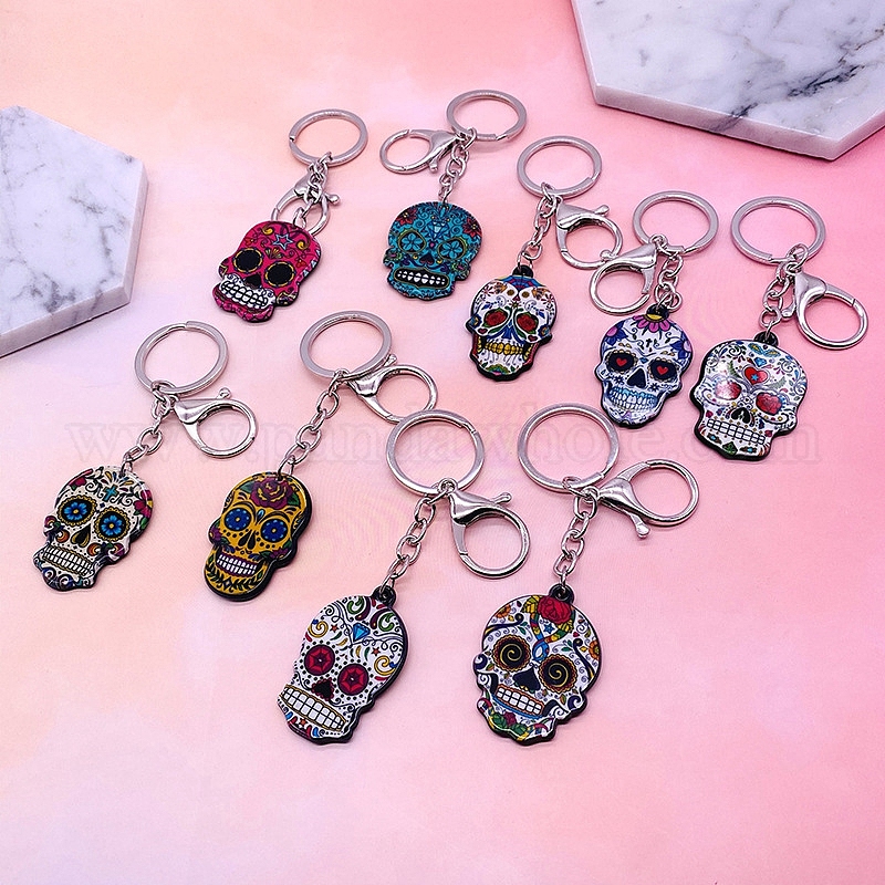 • Разноцветный Брелок в виде черепа из акрилового цветка, брелок на Хэллоуин, красочный, 40x30 мм