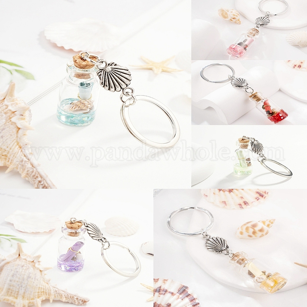 Стеклянная бутылка желаний брелок-подвеска, с бусинами из сплава и железными кольцами для ключей