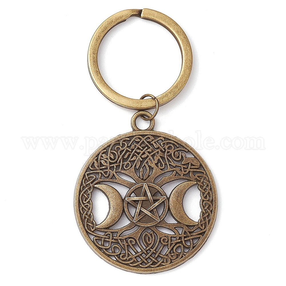 • Античная Бронза Сплав брелок, литыми кольцами, звезда и луна, античная бронза, 6.5 см