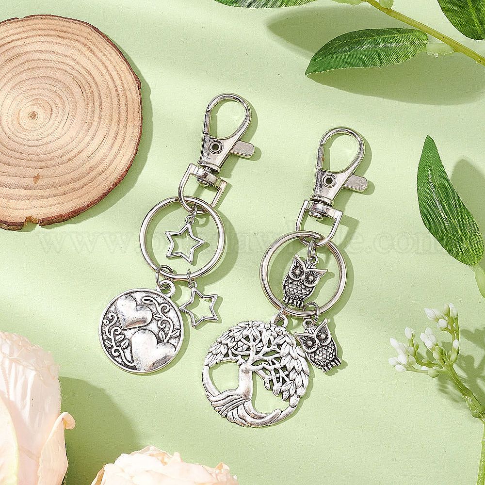 • Античное Серебро Сплав, с совой и звездой, древо жизни, античное серебро, 89 мм, 2 шт / комплект