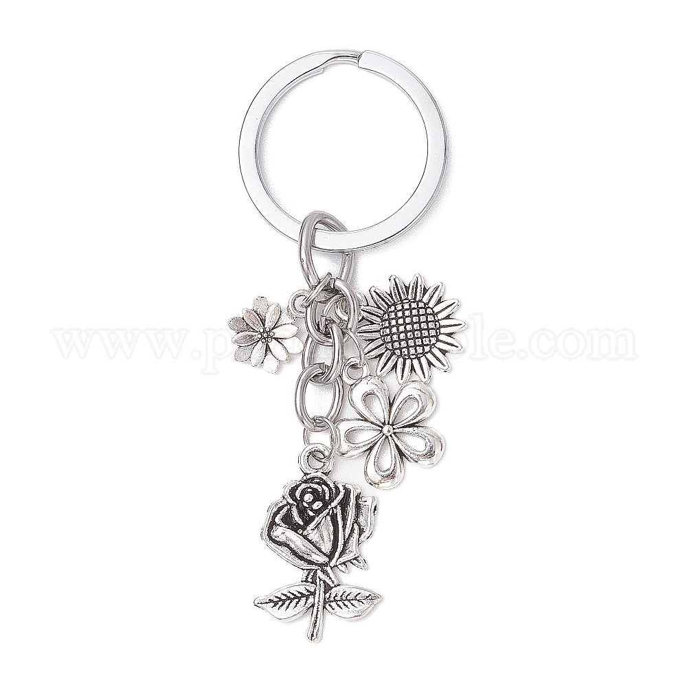 Брелки из сплава в тибетском стиле, с железными разрезными кольцами, цветок