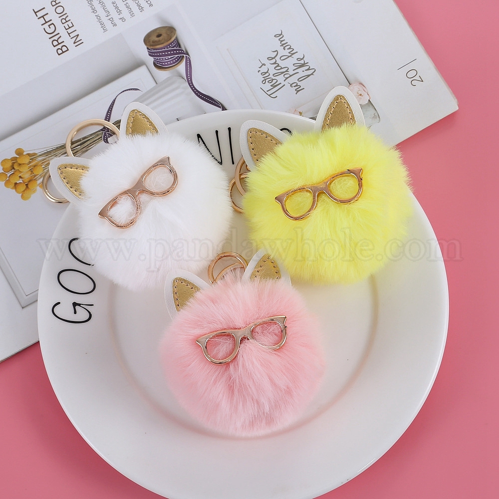 Женский брелок с пушистым помпоном в виде кошки, Подвеска-подвеска в виде автомобиля из искусственного меха кролика