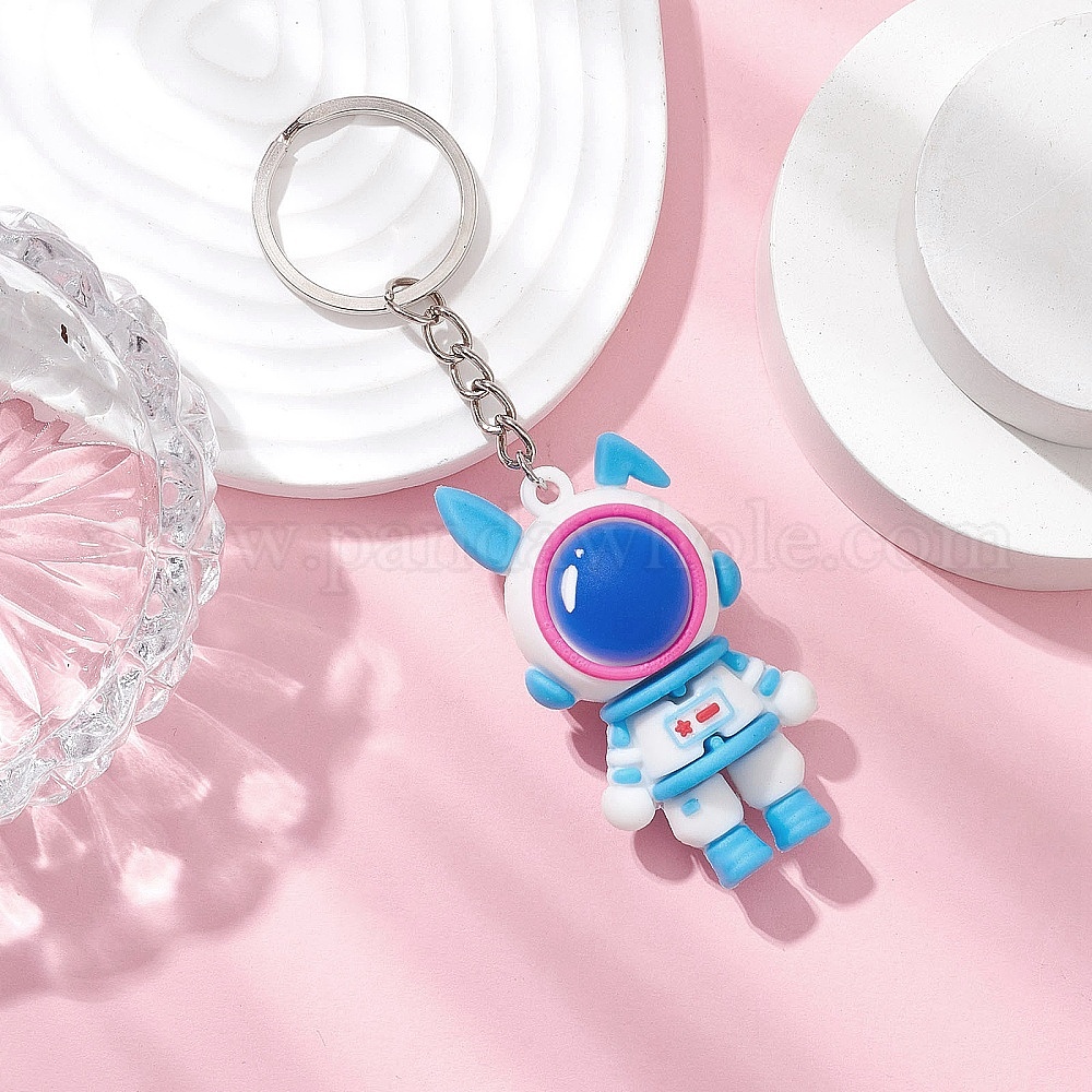 Кролик космонавт пвх пластиковый мультяшный брелок, с железными разрезными брелоками
