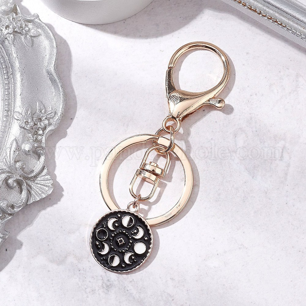 Брелок с подвеской из эмали из сплава, с поворотными застежками сплава, плоско-круглые, луна