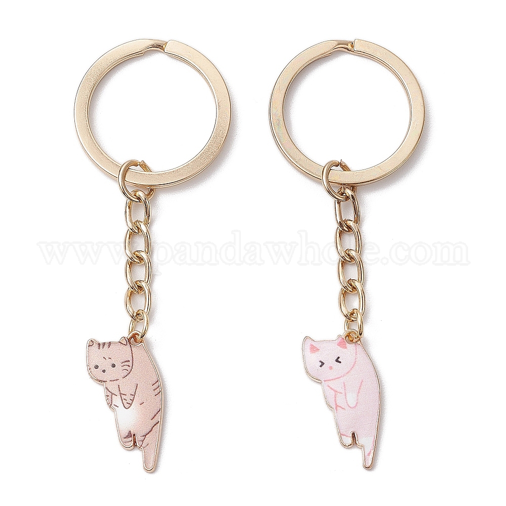 2шт. эмалированные брелки в форме кошки, с железными разрезными брелоками
