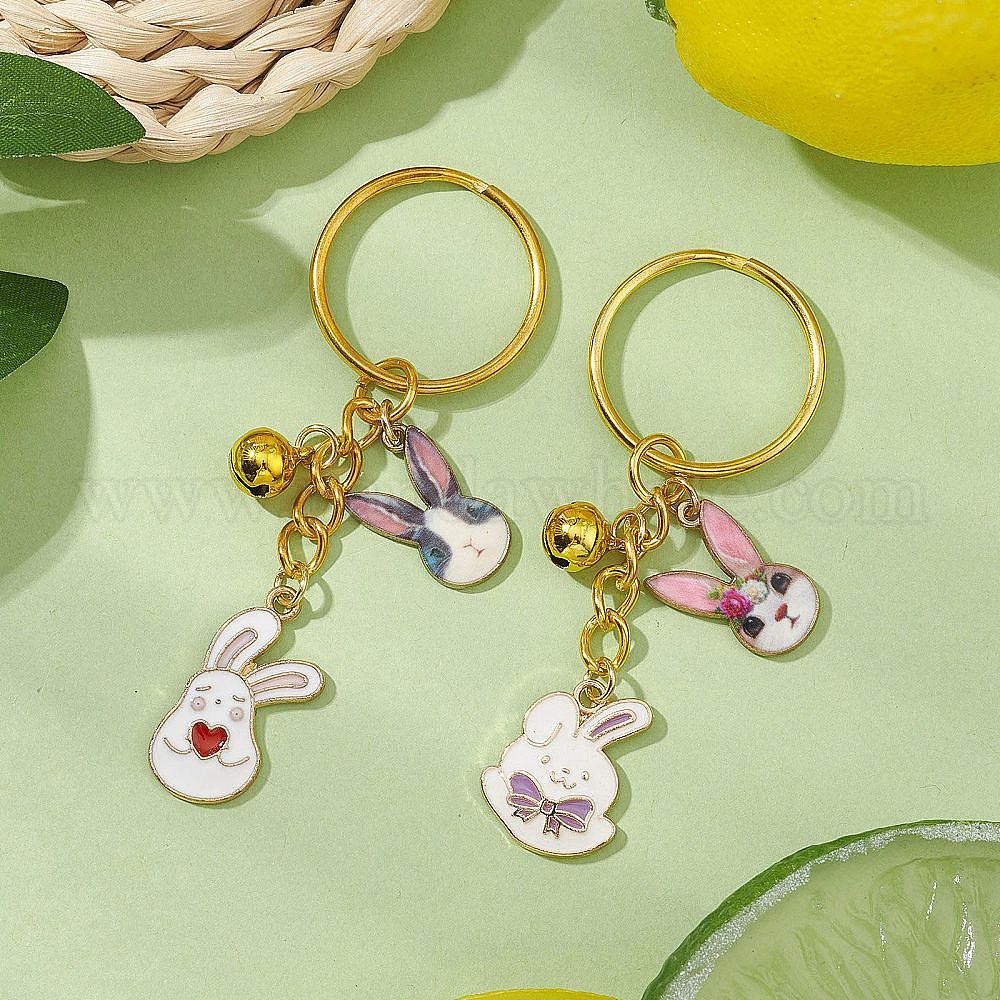 Брелок из эмалевого сплава, с железными разрезными брелоками, кролик