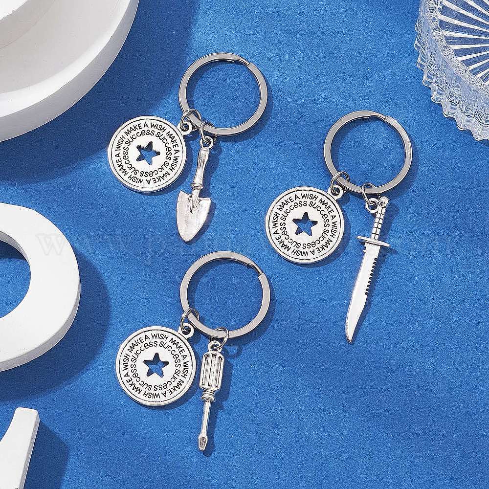 Сплав брелок, с 304 застежкой-цепочкой для ключей из нержавеющей стали, плоско-круглые