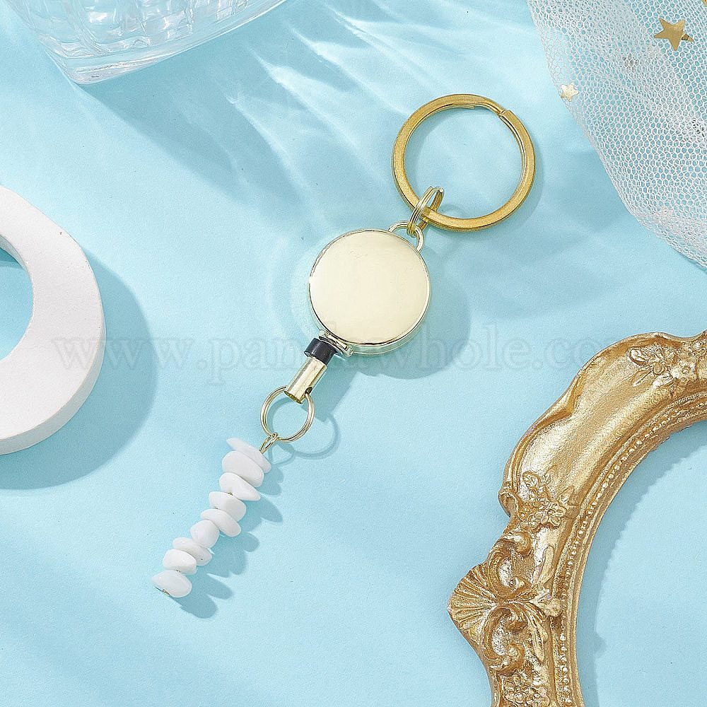Брелок с драгоценными камнями, с катушками для значков из сплава и латунной застежкой для брелка, плоско-круглые