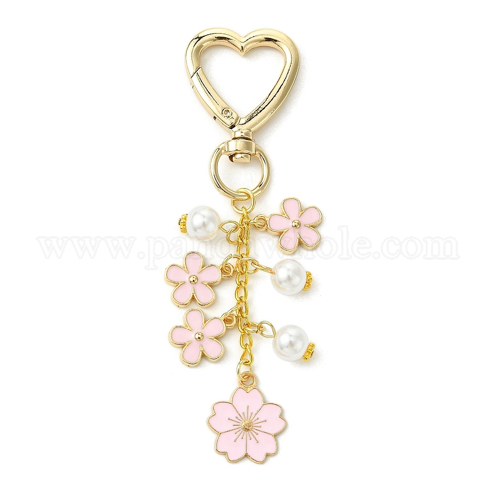 Брелок из цветочного сплава с эмалью и жемчужиной из АБС-пластика, с поворотными застежками-сердечками