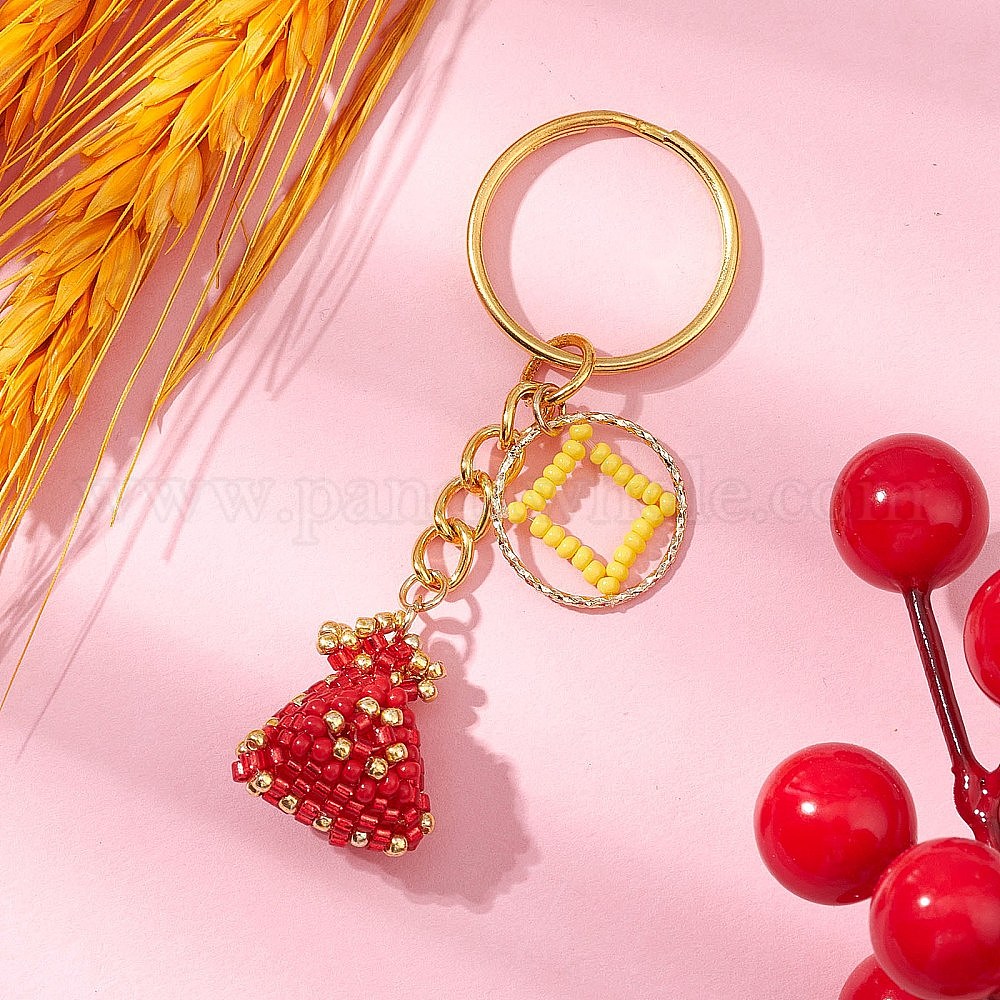 Брелки для ключей из плетеного стекла, с железными разъемными кольцами для ключей и латунными соединительными кольцами
