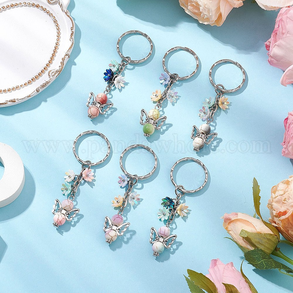 6шт 6 цвета синтетический бирюзовый ангел кулон keychian, с цветком в виде поводка и брелоком из железного сплава с застежкой-клешней в виде лобстера