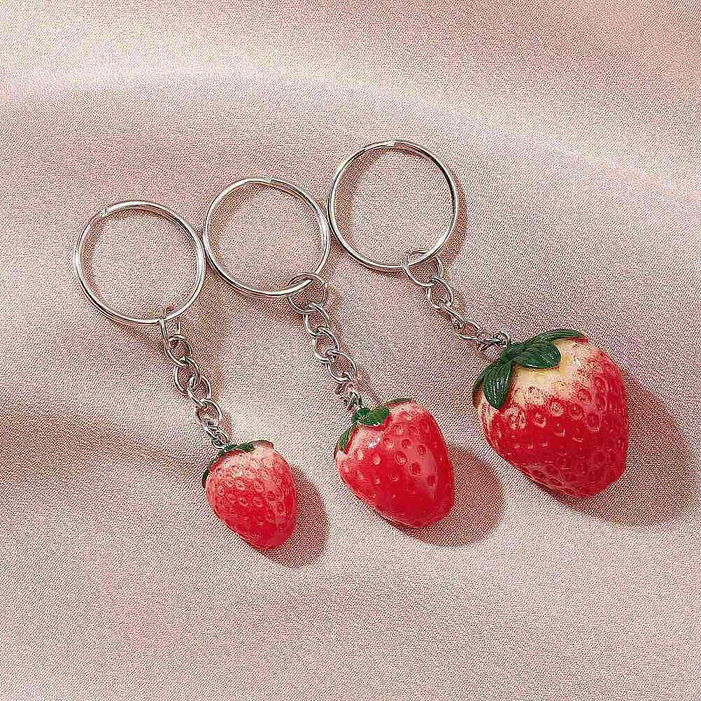 Брелок с подвеской из смолы, с железными кольцами для ключей, клубника