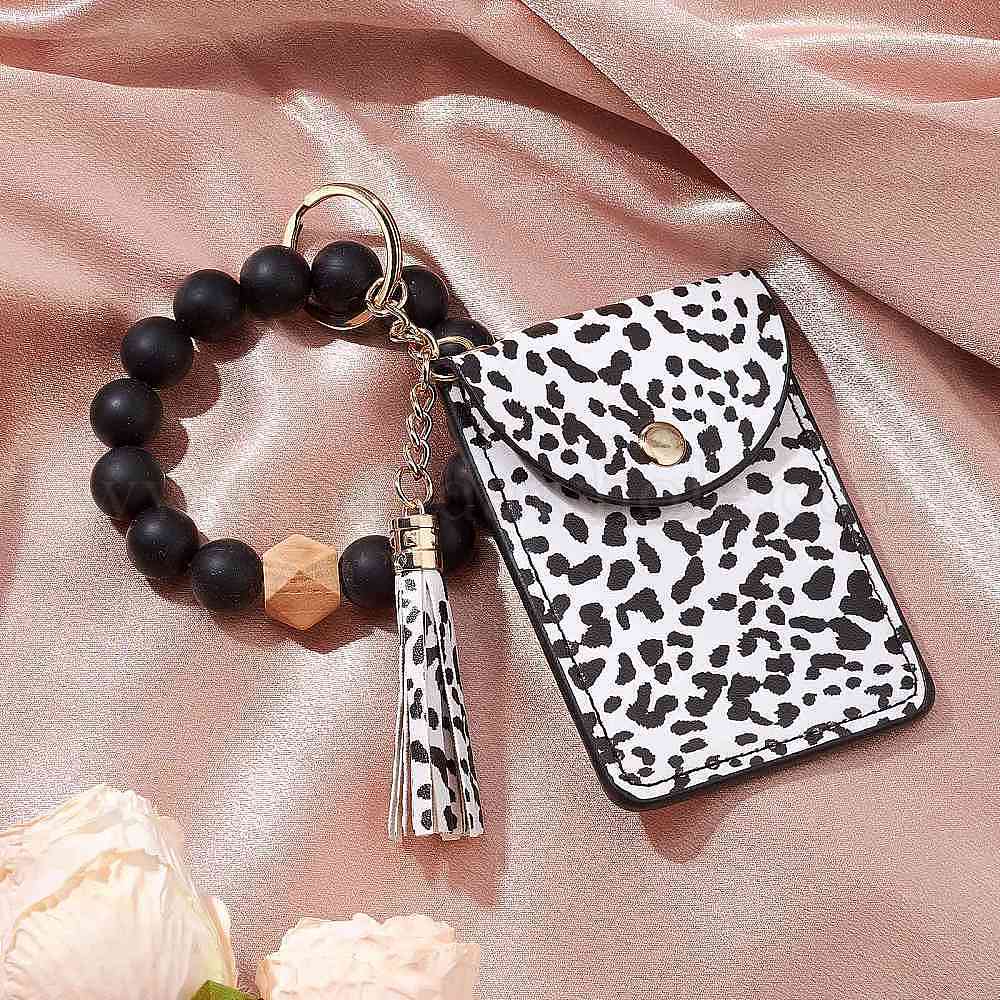 Брелок для ключей из искусственной кожи, с силиконовыми бусинами и фурнитурой из сплава для брелока (0314R5)